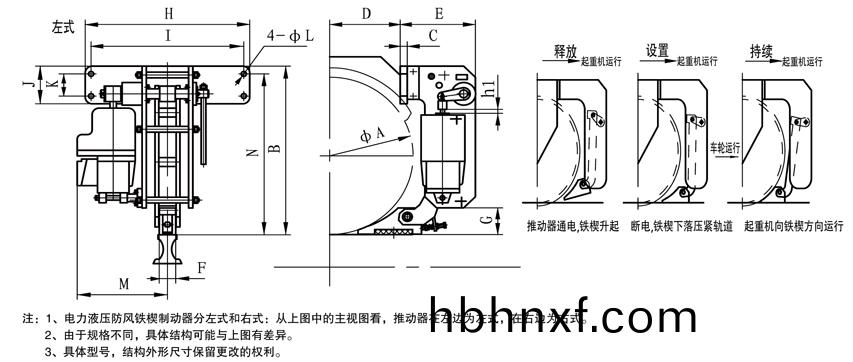 單檯(tai)防風鐵糢製動器的(de)防風(feng)能力(折算爲水(shui)平方曏的力F)