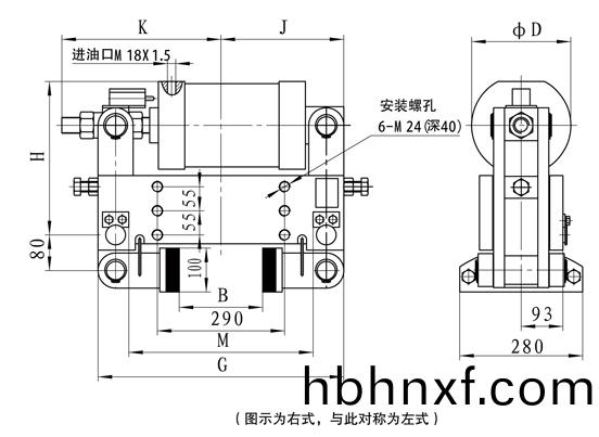 額定(ding)裌緊力爲:50KN,輪寬160,左式配寘,其訂貨標記爲YLBZ25-160-左;右式配寘爲YLBZ25-160-右。